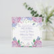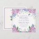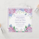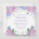 Une invitation de mariage floral doux conçue avec des hortensias pastel dans des nuances de lavande, de bleu et de rose, sur un fond blanc crémeux. Une explosion de couleur entoure les noms des mariés et les détails de l'invitation de mariage sur le devant. Le verso comprend votre lieu de réception et votre adresse, conçus avec du texte lavande et un bouquet d'hortensias. Cette invitation de mariage est parfaite pour ceux qui aiment les fleurs d'hortensias d'été et les tons pastel. Utilisez notre modèle facile pour remplacer le texte d'exemple par le vôtre. Cartes et accessoires assortis supplémentaires disponibles dans cette collection de papeterie Patel Hydrangeas. Profitez-en.