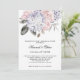 Ces invitations à dîner simples et belles répétitions comportent un bouquet de jolies fleurs d'aquarelle sur un arrière - plan blanc propre. On y trouve des hydrangées violettes de couleur muette, des pivoines et des roses rose vif, des feuillages et des feuilles gris foncé. Un mélange de texte serif moderne et d'élégante typographie de script ajoute un style classique, Le fond de l'invitation a un cadre floral assorti.
