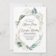 Fleurs d'hydrangée blanche, verdure, cadre d'or géométrique invitation romantique mariage.