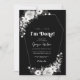 Célébrez votre liberté nouvellement acquise avec cette invitation élégante, avec des fleurs gothiques en noir et blanc, cadre en forme de cercueil, typographie rétro et détails personnalisés de votre choix. Ajoutez facilement vos propres détails en cliquant sur l'option "personnaliser".