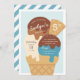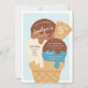 Détendez-vous avec ces invitations à la soirée sur le thème de la crème glacée pour la fête d'anniversaire de votre petit. Amusant design d'été dans une palette de couleurs douces et muettes de chocolat, vanille et crème glacée bleue dans un cône gaufre surmonté d'un sirop de chocolat et de saupoudrées. Personnalisez avec vos détails de fête inscrits sur la glace.