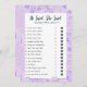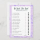 Présentant "He Said, She Said", le jeu de douche nuptiale ultime qui insufflera à votre célébration des rires, des divertissements et une touche de compétition amicale. Ce jeu personnalisé est conçu pour tester les connaissances de vos invités sur la mariée et le marié, assurant une expérience mémorable et engageante pour tous les participants. "He Said, She Said" présente une liste de questions personnalisables qui inviteront vos invités à deviner qui a dit quoi. Au moment de la présentation de chaque question, les participants doivent décider si la déclaration a été faite par la mariée ou le marié. Pour indiquer leur choix, les invités encercleront l'élégante robe de mariée symbolisant la mariée ou le smoking dashing représentant le marié. C'est un jeu excitant qui garde tout le monde sur les orteils et déclenche des discussions animées entre amis et la famille. Cette version de "He Said, She Said" présente un arrière - plan blanc immaculé orné d'une bordure captivante de feuilles botaniques délicats, dans une teinte mauve douce et claire. Le design ajoute une touche d'élégance et de beauté inspirée de la nature à votre douche nuptiale, créant un jeu visuellement époustouflant qui complète parfaitement l'ambiance joyeuse de l'événement. De plus, l'arrière du jeu comporte la même frontière feuille botanique enchanteresse, offrant une expérience cohésive et esthétique agréable pour vos invités. Les cartes de jeu disposent également d'un espace dédié en bas, où les clients peuvent écrire leur nom et garder une trace du nombre de réponses correctes. Cela permet une compétition amicale et permet l'identification du champion ultime "He Said, She Said" à la fin du jeu, ce qui augmente l'excitation et l'anticipation tout au long de l'événement. En explorant les questions personnalisées, préparez-vous à dévoiler des anecdotes drôles, des moments de réconfort et des surprises qui reflètent la dynamique unique et les souvenirs partagés du couple. "He Said, She Said" non seulement divertit, mais renforce aussi le lien entre les invités et le futur duo, créant des souvenirs chéris qui seront chéris pour une vie. Transformez votre douche nuptiale en une fête inoubliable remplie de joie et de connexion. Avec "He Said, She Said", vous créerez une atmosphère de plaisir et de camaraderie tout en célébrant l'amour entre la mariée et le marié. Découvrez la beauté de la frontière feuille botanique violet clair et laissez-vous tenter par une expérience inoubliable de la douche nuptiale !