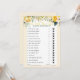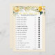 Présentant "He Said, She Said", le jeu de douche de mariée parfait pour ajouter une touche d'amusement et d'excitation à votre journée spéciale. Ce jeu engageant fera rire et deviner vos invités en essayant de faire correspondre des citations à la mariée ou au marié. Avec une liste de questions personnalisées, "He Said, She Said" garantit une expérience mémorable et divertissante pour tous les participants. Cette version de "He Said, She Said" présente un centre blanc immaculé, offrant un cadre propre et élégant pour le jeu. La douce bordure jaune ajoute une touche de chaleur et de gaieté, donnant un ton joyeux aux festivités. Les fleurs jaunes et vertes qui ornent le sommet du jeu évoquent un sentiment de nature et de beauté. La même bordure ravissante est présente à l'arrière du jeu, créant un design cohésif et visuellement agréable. À mesure que vos invités se plongeront dans les questions personnalisables, ils seront mis au défi d'utiliser leur connaissance du couple pour déterminer qui a dit quoi. S'ils croient que la mariée a prononcé les mots, ils encercleront le symbole gracieux de la robe mariage. À l'inverse, s'ils pensent que le marié a fait la déclaration, ils encercleront le symbole dapper tuxedo. Cet élément interactif ajoute un élément de compétition amicale et déclenche des discussions animées entre les participants. Pour rendre le jeu encore plus attrayant, chaque carte comprend un espace en bas pour que les invités écrivent leur nom et gardent trace de leurs réponses correctes. Cette fonctionnalité ajoute une touche d'organisation et permet aux participants de suivre leurs progrès tout au long du jeu. Qui sera le champion ultime "He Said, She Said" ? "He Said, She Said" est plus qu'un simple jeu, c'est un merveilleux voyage pour découvrir les bizarreries, les habitudes et les sentiments du couple. C'est l'occasion pour les invités de se lier, rire et créer des souvenirs durables. Avec son design charmant et ses questions personnalisées, ce jeu de douche nuptiale laissera une impression durable à la fois sur la mariée et ses invités. Améliorez votre expérience de la douche nuptiale avec "He Said, She Said." Avec son centre blanc élégant, complété par une bordure jaune douce et de délicieuses fleurs jaunes et vertes, ce jeu séduira vos invités et créera une atmosphère de joie et de rire. Préparez-vous à une fête mémorable et divertissante alors que vous vous immergez dans le monde de "He Said, She Said"!