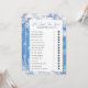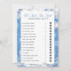 Introduire "He Said, She Said", le jeu de douche de mariée parfait qui ajoutera une touche délicieuse de plaisir et de compétition à votre célébration. Ce jeu personnalisé est conçu pour tester les connaissances de vos invités sur la mariée et le marié, créant une expérience engageante et mémorable pour tous les participants. "He Said, She Said" présente une liste de questions personnalisables qui inviteront vos invités à deviner qui a dit quoi. Comme chaque question est lue à haute voix, les participants doivent décider si la déclaration a été faite par la mariée ou le marié. Pour indiquer leur choix, les hôtes encercleront la charmante robe mariage symbolisant la mariée ou le somptueux smoking représentant le marié. C'est un jeu interactif qui maintient l'excitation haute et encourage les conversations animées entre amis et la famille. Cette version de "He Said, She Said" présente un arrière - plan blanc immaculé, orné d'une bordure captivante de flocons de neige bleus et blancs en hiver. Le design ajoute une touche d'élégance et d'ambiance hivernale à votre douche nuptiale, complétant parfaitement l'atmosphère joyeuse de l'occasion. La même frontière enchanteresse de flocon de neige est également présentée à l'arrière du jeu, créant une expérience cohésive et visuellement attrayante pour vos invités. Les cartes de jeu comprennent un espace dédié en bas où les clients peuvent écrire leurs noms et garder une trace du nombre de réponses correctes. Cela favorise une compétition amicale et permet l'identification du champion ultime "He Said, She Said" à la fin du jeu, ajoutant une couche supplémentaire d'excitation à l'événement. Alors que vous explorez les questions personnalisées, préparez-vous à découvrir des anecdotes amusantes, des moments de réconfort et des surprises qui reflètent la dynamique unique et les souvenirs partagés du couple. "He Said, She Said" non seulement divertit mais approfondit aussi le lien entre les invités et le futur duo, créant des souvenirs durables qui seront chéris pendant des années à venir. Transformez votre douche nuptiale en une fête inoubliable remplie de rire et de connexion. Avec "He Said, She Said", vous créerez une atmosphère de plaisir et de camaraderie tout en célébrant l'amour entre la mariée et le marié. Découvrez la beauté de la bordure de flocon d'hiver bleu et blanc et laissez l'excitation se dérouler pendant que vous vous embarquez dans une expérience mémorable de douche nuptiale!
