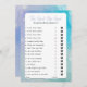 Présentant "He Said, She Said", le jeu de douche nuptiale ultime qui fera vibrer vos invités! Ce jeu engageant et interactif est conçu pour tester votre connaissance de la mariée et du marié tout en ajoutant une touche de compétition amusante et amicale à votre célébration de la douche nuptiale. Préparez-vous à rire, à vous rappeler et à découvrir des faits fascinants sur le couple heureux. "He Said, She Said" présente un design élégant et élégant, avec un centre blanc immaculé qui sert de toile de fond aux questions personnalisables. Ce qui distingue cette version est la bordure captivante ornée de charmantes étoiles bleues. Cette bordure d'inspiration céleste ajoute une touche de fantaisie et d'élégance au jeu, élevant instantanément l'attrait visuel. La même bordure bleu étoiles est portée à l'arrière du jeu, assurant une conception cohésive et visuellement époustouflante. Alors que vos invités s'embarquent dans ce jeu passionnant, ils seront présentés avec une série de questions personnalisées qui reflètent les personnalités et expériences uniques de la mariée et du marié. Le défi est de deviner si chaque déclaration a été faite par la mariée ou le marié. Pour indiquer leur choix, les participants encercleront soit la robe gracieuse du mariage s'ils croient que la mariée l'a dit, soit le smoking écrasant s'ils pensent que le marié a fait la déclaration. Cet élément interactif ajoute une sensation d'anticipation, de rire et d'amabilité aux festivités. Pour suivre les progrès de chaque participant et ajouter une touche personnalisée, chaque carte de jeu dispose d'un espace désigné en bas pour que les invités écrivent leur nom et enregistrent le nombre de réponses correctes. Cela encourage non seulement la compétition amicale, mais permet aussi à chacun de célébrer sa connaissance du couple et de partager la joie de l'occasion. Que vos invités soient des amis proches, des membres de votre famille ou des connaissances, "He Said, She Said" favorise les connexions, déclenche des conversations et crée des souvenirs chéris qui seront chéris pendant des années à venir. "He Said, She Said" n'est pas seulement un jeu ; c'est une occasion de célébrer le couple et de partager leur histoire d'amour. Avec sa frontière d'étoiles bleues enchanteresses et ses questions personnalisables, ce jeu de douche nuptiale séduira vos invités et insufflera l'atmosphère de rire et d'excitation. Préparez-vous à une expérience de douche nuptiale vraiment inoubliable avec "He Said, She Said"!