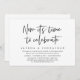 Carte d'invitation d'élopement de mariage sur le thème de l'écriture moderne (C'est maintenant temps de célébrer). Elle est parfaite pour votre dîner de mariage décontracté au bord du lac, la danse et la fête.