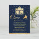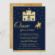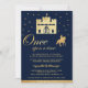 Éblouissez vos invités avec cette invitation à baby shower à thème conte de fées avec un magnifique château d'or. Ajoutez simplement les détails de votre événement sur ce modèle facile à utiliser pour en faire une invitation unique. Retournez la carte pour révéler une fausse texture de parties scintillant d'or au dos de la carte.