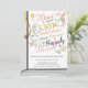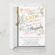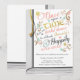 Un invitation de baby shower mignon et amusant ! Dans un style de livre d'histoires pour un thème de queue de fée. Rose et or sur un arrière - plan blanc.