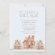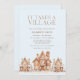 L'hôtel It Take a Village Holiday Town Baby shower Invitation avec un thème de maison en pain d'épices et a créé une charmante et confortable scène hivernale des merveilles. L'invitation présente un charmant village lunatique de maisons en pain d'épices, épicées de givrage "neige", entourées de délicats flocons de neige. Chaque maison, décorée de glace, de gouttes d'eau et de minuscules accents de bonbons, représente le soutien accueillant des amis et de la famille qui se réunissent pour célébrer le nouveau bébé. La palette de couleurs est douce et accueillante, avec des tons neutres d'hiver. C’est une invitation qui promet un rassemblement plein de chaleur, d’amour et d’excitation partagée au milieu d’une agréable scène hivernale. Éléments correspondants disponibles.