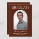 Il L'A Fait Photo Bourgogne Maroon Graduation Invitation. Célébrez votre grade avec style grâce à ces invitations à la graduation moderne bordeaux et blancs avec la photo du diplômé sur le devant à l'intérieur d'une forme d'arc avec le nom de la diplômée, le nom de l'école et le diplôme gagné. Au verso se trouve l'information pour la grande fête, y compris "il l'a fait" et les détails de la fête de remise de diplômes pour tous vos invités.