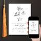 Fêtez le jalon du diplômé avec cette invitation moderne et minimaliste à la remise des diplômes ! Avec un design élégant en noir et blanc avec un script élégant "He did it" et une casquette de fin d'études dessinée à la main, cette invitation est parfaite pour annoncer votre célébration spéciale. Personnalisez facilement avec le nom du diplômé, l’année de cours, les détails de l’événement et une image de la grade pour créer un souvenir unique. Que ce soit pour un rassemblement décontracté ou un événement formel, ce design intemporel est un moyen sophistiqué d'honorer leur réalisation. 🎓 ✨