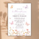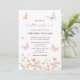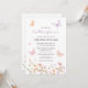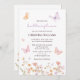 Elégante invitation à la douche nuptiale fleurie avec fleurs sauvages aquarelle et papillons pastel sur un arrière - plan blanc. Le design est d'inspiration bohème, avec un esprit fantaisiste et romantique. Utilisez les outils de conception pour customiser le texte, la police et les couleurs. Disponible en téléchargement.