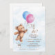 Un mignon ours en peluche tenant sur un ballon bleu et rose. Aquarelle ciel arrière - plan. Fontes de style manuscrites et fantaisistes. Personnalisez le modèle avec vos propres détails. Utilisez l'outil Modifier pour sélectionner différentes polices ou redimensionner/repositionner les éléments de conception. © Kimbellished, LLC