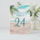 Island Breeze Painted Beach Scene, avec Ocean Waves, Sandy Beach et Palm Trees, avec un beau ciel bleu turquoise. Avec Des Polices De Script De Typographie Moderne. Une Plage Tropicale D'Été, Ou Design De Mariage De Destination - Dîner Personnalisé Mariage Réception Invité Siège Numéro Carte Place! ~ Regardez ma boutique pour voir l'ensemble de la suite mariage pour ce design!