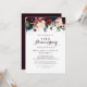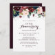 Cette invitation anniversaire de mariage illustrée aquarelle est parfaite pour une célébration romantique. Le design présente des éléments artistiques peints à la main en aquarelle bleu marine, burgundy, rouge, roses écloses et pivoines avec des feuilles vertes élégantes, évoquant la beauté idyllique et colorée de l'automne.