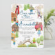 Cette invitation fantaisiste et personnalisée à la fête présente un thème classique de pliage et de contes de fées pour les enfants. Diverses illustrations de contes de fées et d'histoires folkloriques d'autrefois sont représentées autour de la frontière. Les Trois Petits Cochons et leurs maisons sont vus à gauche, avec le Petit Chaperon Rouge juste au-dessus d'eux. Le Big Bad Wolf est à droite avec Goldilocks et les Trois Ours debout en dessous de lui. Le Gruff à trois branches et le troll sont représentés en bas. La ligne classique "Il était une fois" est imprimée dans une police de script élégante près du haut. Vous pouvez personnaliser cette invitation de rêve de conte de fées avec vos propres informations de fête et texte personnalisé.