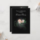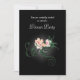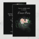 Une invitation à une soirée élégante et raffinée avec une illustration de délicates fleurs roses en fleurs avec des volutes vertes et des feuilles sur un fond noir. Un ombrage gris clair lumineux centré autour des fleurs accentue et illumine leur beauté.