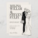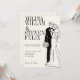 Une invitation de mariage chic en noir et blanc avec un design de ruban élégant, alliant l'élégance moderne à la sophistication intemporelle.