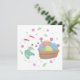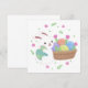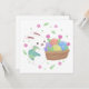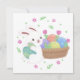 Une illustration mignonne d'un lapin tenant un œuf de Pâques devant un panier rempli d'œufs de Pâques colorés