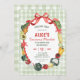 Illustration de la main irrégulière Farmers Market Invitation d'anniversaire, un jour seulement Invitation d'anniversaire, Red Bow Girl Anniversaire
