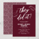 Double la remise de diplôme signifie double le plaisir ! Nos invitations de fête de remise de diplôme conjointes simples, modernes et élégantes fixent sans effort le ton pour votre célébration. Avec un fond bordeaux élégant et une touche d'humour avec la phrase 'ils l'ont fait', ainsi que 2 croquis de chapeaux de diplômé. Ces modèles sont faciles à personnaliser, ce qui rend la planification de la fête facile. Osez différencier votre événement dès l'invitation !