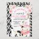 Vache mignonne thème ou avez-vous entendu l'invitation moos premier anniversaire d'anniversaire pour une petite fille. Le design d'invitation à l'anniversaire de cette fille comprend une jolie vache blanche et noire, un motif audacieux et de jolis roses floraux roses. Ce design comporte également une parties scintillant en faux or amovible, une sur l'arrière et l'avant de l'invitation. Cette invitation est une façon mignonne pour les invités invitations à une vache, la ferme, la soirée de premier anniversaire de la fille à thème de baryard.