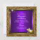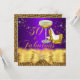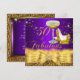 Invitation d'anniversaire Or et violet 50 & Fabuleux. Élégant nœud en joyaux duveteux et cocktail doré avec talons hauts. Veuillez noter que toutes les images sont plates, elles n'ont pas de véritable nœud ou de véritables bijoux !