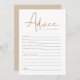 Cette nouvelle carte de conseil et de voeux dispose d'une police manuscrite pointue et d'un design moderne minimaliste avec une combinaison crémeuse de couleur beige. Ce design minimaliste est parfait pour votre douche de mariée moderne ou bohème, douche de couple ou événement mariage. Modifiez facilement toutes les couleurs pour répondre aux besoins de votre événement.