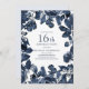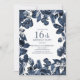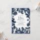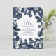 Invitation pour une fête d'anniversaire 16 ans avec feuilles et fleurs bleu marine/indigo sur fond blanc. Contactez-nous pour obtenir de l'aide sur la personnalisation ou les produits correspondants.