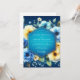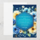 A deep indigo backdrop frames a vibrant arrangement of creamy yellow and sapphire blue blooms. This design evokes a romantic, dreamy atmosphere with its lush botanical elements. Delicate petals and swirling leaves create an enchanting visual.