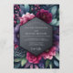 Experience a dramatic and romantic atmosphere with this moody floral design. A lush arrangement of fuchsia peonies, amethyst-hued succulents, and dark teal foliage creates a stunning visual display. Set against a dark, shadowy background, this vibrant jewel-toned botanical collection is perfect for an elegant evening affair.
