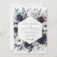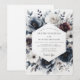 Experience the dramatic elegance of this stunning artistic arrangement. Deep indigo and slate blue anemones bloom alongside soft white roses and delicate greenery. The moody watercolor style creates a sophisticated and romantic atmosphere, perfect for a chic winter or evening affair. This design blends dark, somber tones with light, ethereal beauty.