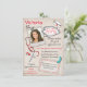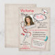 Super cool et moderne Invitation de fin d'études pour toute personne dans le domaine médical. Remplacez l'image affichée par votre photo et déplacez-la à la bonne taille. Si vous avez des problèmes, faites-le moi savoir à katz@me.com Caractéristiques un fond de lin grungy avec des graphiques amusants dessinés à la main d'un chapeau d'infirmière, stéthoscope, pilules, aiguille et bloc d'ordonnance.