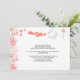 Conçu pour un mariage en Crète. Pratique pour donner à vos invités toutes les informations supplémentaires essentielles dont ils pourraient avoir besoin pour célébrer votre mariage en Crète ! Images de l'île de Crète, papillons, palmier et volutes latérales de style rétro fantaisie en rose corail. Le texte du cachet indique : Destination Crète. Facile à personnaliser, il suffit de mettre vos coordonnées. Livré avec une enveloppe blanche.