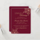 Ajoutez tous les détails de la réception à cette élégante carte de réception en forme de flocon de neige en bordeaux et or. Complète nos invitations de mariage d'hiver bordeaux Elégance Flocon de Neige. Changez l'arrière-plan de cet ensemble d'invitations de mariage d'hiver élégant et tendance en une palette de couleurs de mariage d'hiver.