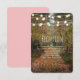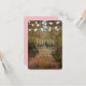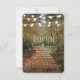 Carte d'information sur la réception de mariage sur le chemin de la forêt enchantée. Design rustique boisé.