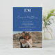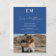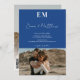 Un faire-part de mariage moderne, simple et moderne minimaliste en bleu de l'année avec des noms personnalisés, initiales avec une calligraphie manuscrite. Tous les textes, noms et couleurs arrière - plans sont personnalisables avec 2 photos. Une invitation simple et minimaliste, ajoutez votre code qr pour rsvp, les détails et le tout en un seul invitation.