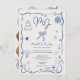 Fêtez l'union de l'amour avec nos Initiales enchanteresses Faire-part de mariage bleu rétro français! Ce design vintage illustré à la main dégage élégance et fantaisie, avec des gribouillages délicats, des cadres ondulés et des croquis complexes de nourriture et de boissons. Des verres à vin aux cocktails en passant par les délicieuses gourmandises, les détails chaleureux ont ouvert la voie à une célébration mémorable de l'amour. La police manuscrite ajoute une touche personnelle, tandis que les couleurs bleues modifiables vous permettent de customiser l'invitation à correspondre parfaitement à votre thème mariage. Avec une photo ondulée à l'arrière, capturer des moments précieux à chérir éternellement.