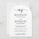 Invitez la famille et les amis à une célébration de mariage simplement élégante avec des invitations photo arquées à monogramme stylé. Tout le texte est simple à personnaliser et les couleurs peuvent être modifiées à l'aide de l'outil de conception Zazzle. Le design moderne noir et blanc présente une photo du couple, des initiales calligraphiées tendance et une typographie de style machine à écrire chic. Tout le texte de la cérémonie et de la réception peut être personnalisé ou supprimé. Cette invitation unique apporte une touche d'élégance à la célébration d'un jour spécial.