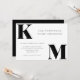 Simple, mais un énoncé : Contemporain monogramme faire-part de mariage design avec typographie audacieuse et monogramme en noir et blanc. Un texte minimaliste et élégant sur le devant pour informer vos invités sur le prochain mariage. Code QR personnalisé au dos. Toutes les couleurs sont personnalisables pour s'adapter à votre thème mariage si vous ne voulez pas opter pour le noir et blanc - utilisez l'outil de conception pour effectuer les changements que vous voulez.