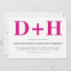 Magenta rose et blanc initiales typographie audacieuse faire-part de mariage. Le dos comprend un motif géométrique.