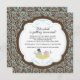 Commencez votre évènement par notre invitation à la douche nuptiale moderne et branchée, avec une mignonne paire d'inséparables habillés en tenue mariage dans un nid dressé sur un arrière - plan en feuilles damassées marron et turquoise. customisez notre invitation avec vos informations mariages et vous êtes tous prêts à partir.