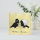 Un faire-part de mariage aussi mignon avec un noir et une paire d'inséparables habillés en mariée et mariés en chapeau et voile sous un décor de lin dentelé blanc sur une belle base blonde dorée. Personnalisez-le avec vos propres détails mariages ; il est destiné à impressionner vos invités mariages et donner le ton pour une journée de mariage parfaite. Cliquez sur l'image ci-dessous pour voir des produits mariages similaires