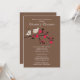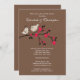Commencez votre évènement par notre invitation à la douche nuptiale tendance et moderne avec une mignonne paire d'oiseaux mariés et mariés amoureux assis sur une branche florale rouge sur un arrière - plan marron. customisez simplement notre invitation à la douche nuptiale pour les couples d'oiseaux avec vos informations mariages et vous êtes tous prêts à partir. ©Illustrations JW