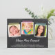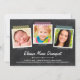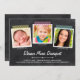 Ce faire-part unique et moderne de graduation de 3 photos est doté d'un arrière - plan de style tableau noir, d'un ruban de lavage et d'un espace pour trois photos carrés. De courtes légendes peuvent accompagner chaque photo dans ce multi-modèle photo. Les détails de la fête de graduation peuvent être ajoutés au modèle au dos de la carte, qui comprend également un arrière - plan de tableau de bord. (Conseil design : assurez-vous que vos photos sont carrés avant de les télécharger)