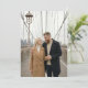This wedding invitation features a romantic photograph of a couple standing on a bridge, holding hands and smiling at each other. The design showcases a muted color palette with soft grays, browns, warm beige, and deep navy blue, creating a serene yet intimate atmosphere. The naturalistic style emphasizes realism, capturing the architectural beauty of the bridge's cables and vintage street lamp in the background. Perfect for couples who appreciate urban charm and timeless elegance, this invitation conveys warmth and connection, making it ideal for celebrating your special day.