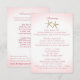 Carte d'information pour invitation de mariage à la plage avec un hortensia rose et un coquillage d'un côté et une étoile de mer de l'autre. Itinéraire d'un côté et hébergement de l'autre. Personnalisez le texte comme vous le souhaitez.