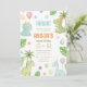 Haga que su pequeño cumpleaños sea inolvidable con esta adorable invitación a los dinosaurios acuarelas. Con dinosaurios de bebé pastel, globos, hojas tropicales, palmeras, huevos, flores y confeti festivo, este diseño lúdico crea el tono perfecto para una divertida celebración con temática de dino. Personalice con el nombre, edad, fecha, hora y detalles del fiesta de su hijo. Ideal para niños y chicas que adoran los dinosaurios y los adorables temas fiestas pastel.