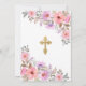 Bautizo Invitation moderne, élégante fille avec arrangements floraux rose & violet clair, croix d'or élégante, script de typographie Baptême en lettrage tendance. Pour modifier ce modèle, cliquez sur customiser plus loin.