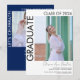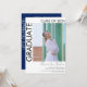 Moderne minimaliste deux photos Faire-part de graduation & Grad Party Invitation avec texte noir sur arrière - plan blanc. Le côté arrière est bleu marine avec du texte blanc
